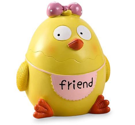 Conçue en résine résistante, la Tirelire Poussin garantit une durabilité qui traverse le temps. Elle s’impose comme un choix esthétique et éducatif pour les parents souhaitant mêler fonctionnalité et décoration. Ce mélange de robustesse et de charme est parfait pour une utilisation quotidienne tout en assurant la sécurité de la tirelire.